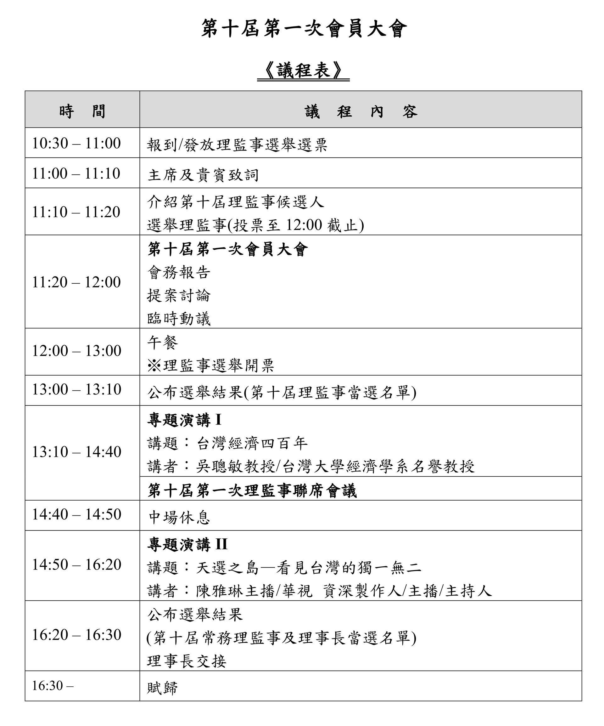 《第十屆第一次會員大會》謹訂於113年4月27日(星期六)召開,除了例行的會務討論外,安排精彩的專題演講,此次適逢本會第十屆理監事選舉,敬請您務必撥冗參加。
