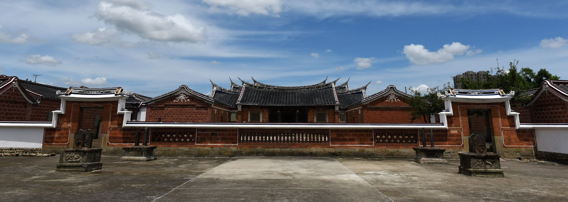 又稱「李金興古厝」,建於清同治年間(1860年),為大溪望族李氏之宅第。建築採兩落四護龍的完整格局,形制嚴謹。紅磚砌牆、燕尾脊屋頂,並融入精緻的木雕與石雕工藝;屋前廣場設旗桿座,半月池兼具防火、防盜與景觀美化之效。整體氣勢恢宏、工藝卓越,具國定古蹟身分,為臺灣最具代表性的十大傳統民居之一。